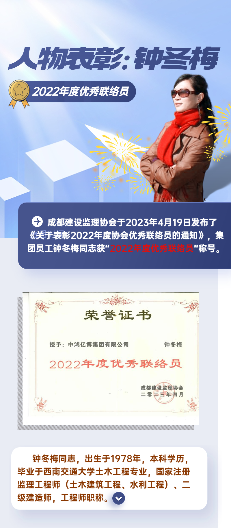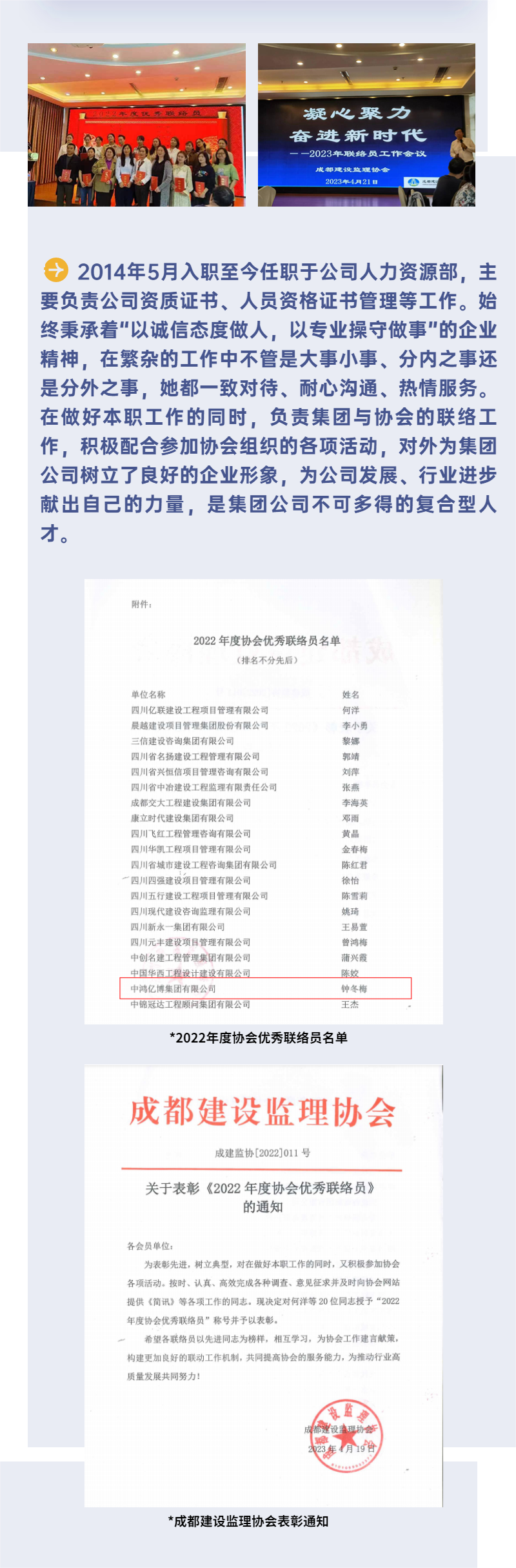 【人物风采】集团员工钟冬梅荣获监理协会“2022年度优秀联络员”