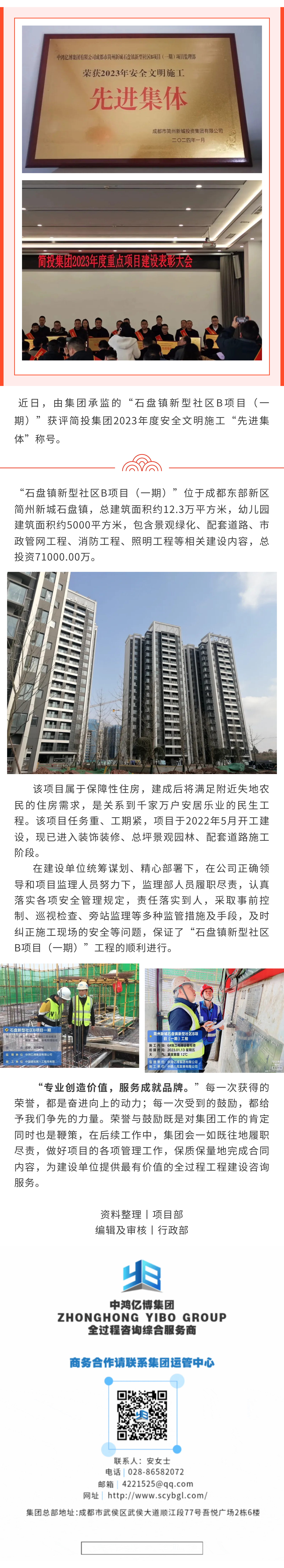 亿博动态丨喜讯频传—集团获评简投集团2023年度安全文明施工“先进集体”称号