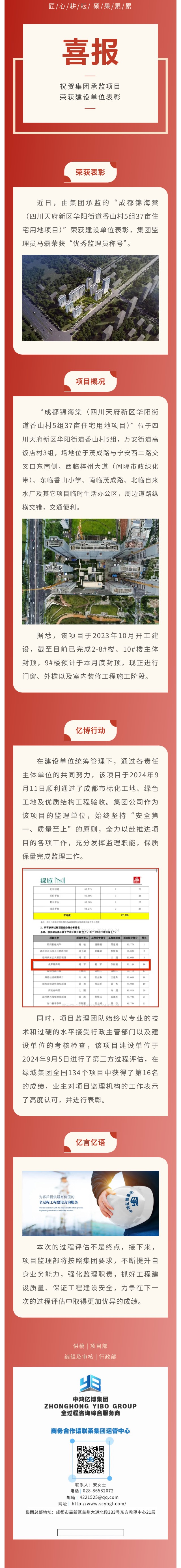 亿博动态 | 祝贺集团承监的“成都锦海棠(四川天府新区华阳街道香山村5组37亩住宅用地项目)”荣获建设单位表彰