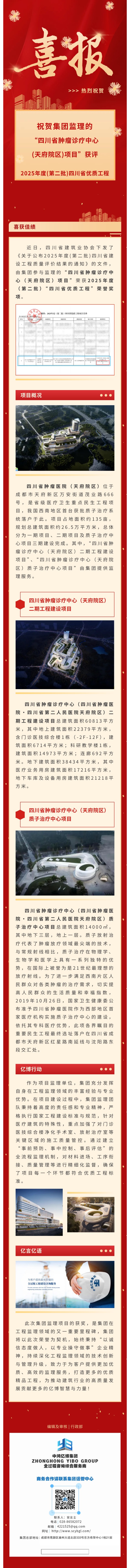 祝贺集团监理的“四川省肿瘤诊疗中心(天府院区)项目”荣获2025年度(第二批)“四川省优质工程”荣誉奖项