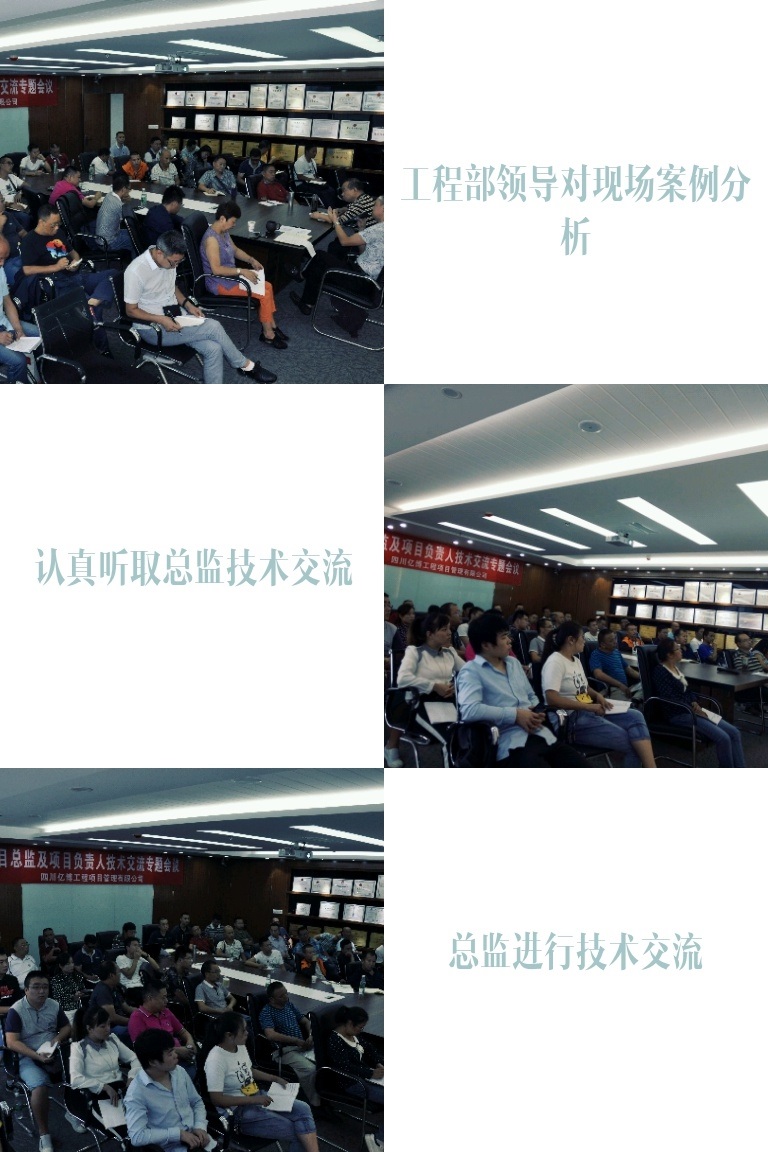 2017年9月2日,公司在总部召开了为期2天的“项目总监及项目负责人技术交流专题会”,会议特邀专家对当前建筑市场的形势、发展趋势、监理行业现状及未来发展进行了深入透彻的分析与讲解,提醒我们所有监理人必须要认清形势、要有时代紧迫感和忧患意识。总工办也围绕会议主题组织开展了“建筑安全事故案例分析、专题论文探讨、监理工作经验交流、监理工作缺陷分析和优秀范例品鉴”等相关会议事项,并就下一步监理工作质量、监理工作信息化管理、监理企业信用评价管理和工程全过程咨询工作等方面做出了详细部署与安排。