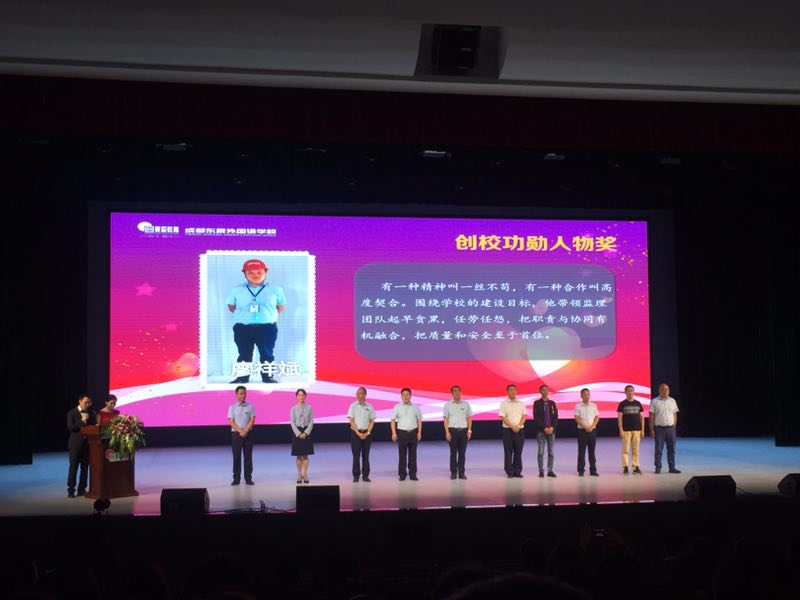 在竣工庆典上,建设单位为公司颁发了“精心监理保优质,圆梦东辰颂赞歌”奖牌,项目总监廖祥斌被建设单位评为“创校功勋人物”,得到施工单位及建设单位的一致好评;他们是中鸿亿博集团有限公司廖祥斌、邹杉、鲁翱翔、杨斐、李小彬、李杨、朱维璋、任明、陈林、曾西勇、罗玉君。为东辰外国语学校项目监理部的各位同仁喝彩!作为亿博人希望中鸿亿博集团有限公司蓬勃发展,蒸蒸日上!