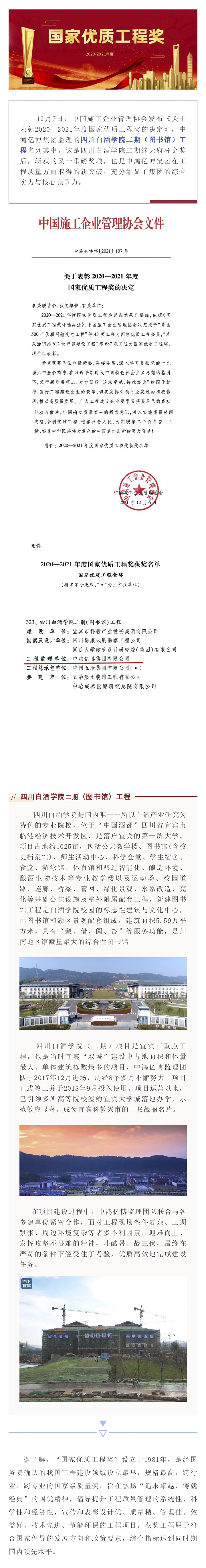中鸿亿博集团监理项目荣获2020—2021年度国家优质工程奖