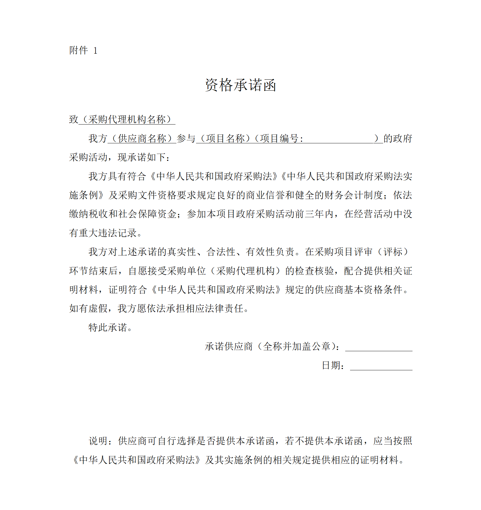 ③具有良好的商业信誉和健全的财务会计制度:提供《资格承诺函》。