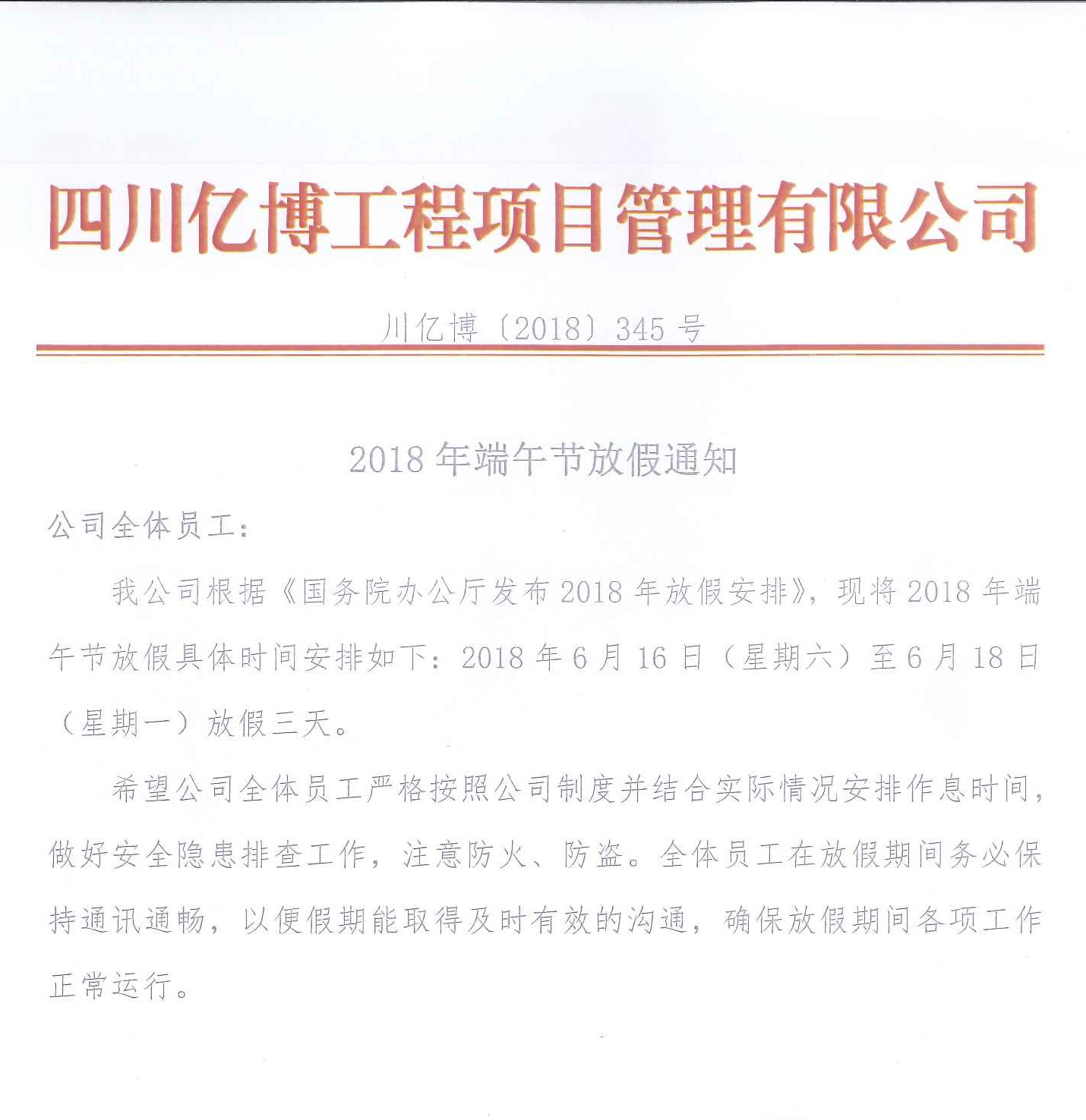 2018年端午节放假通知