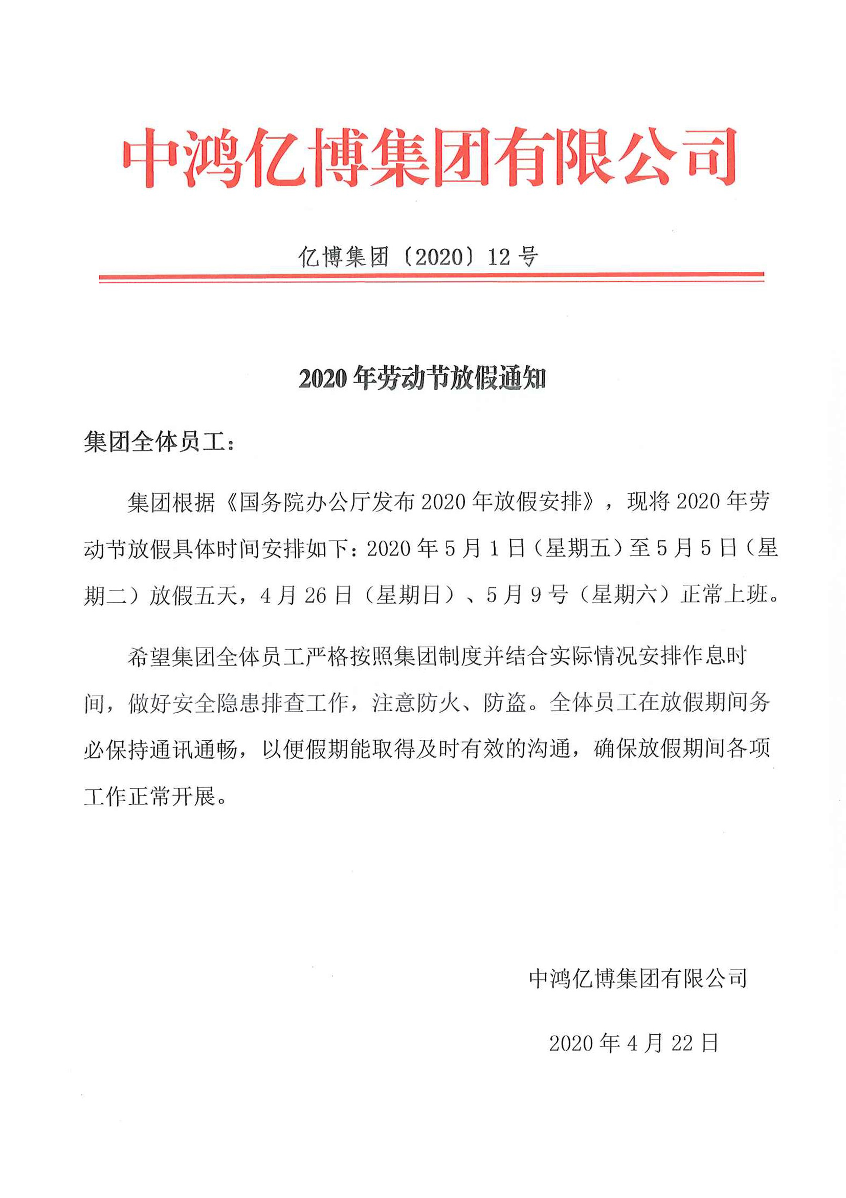 中鸿亿博集团关于集团总部办公时间继续延期的通知