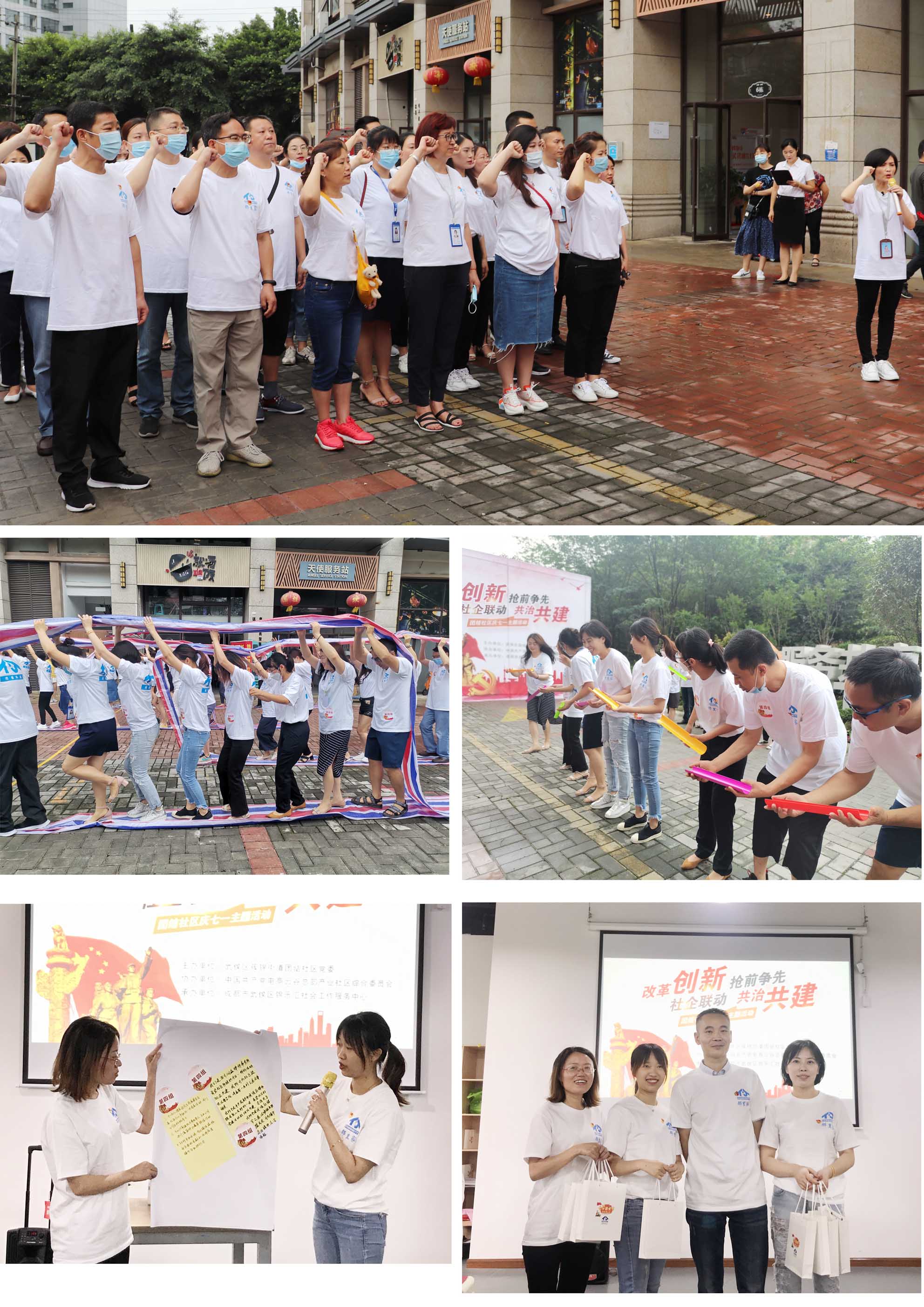 尽管斜风细雨,全体党员还是在团结社区党委书记的带领下重温入党誓词,进行庄严宣誓;还是团结一心、凝心聚力,完成了车轮滚滚、珠行万里等比赛项目。集团党支部委员王熠瑄带领三位党员群众在各比赛队伍中斗志昂扬,收获满满。