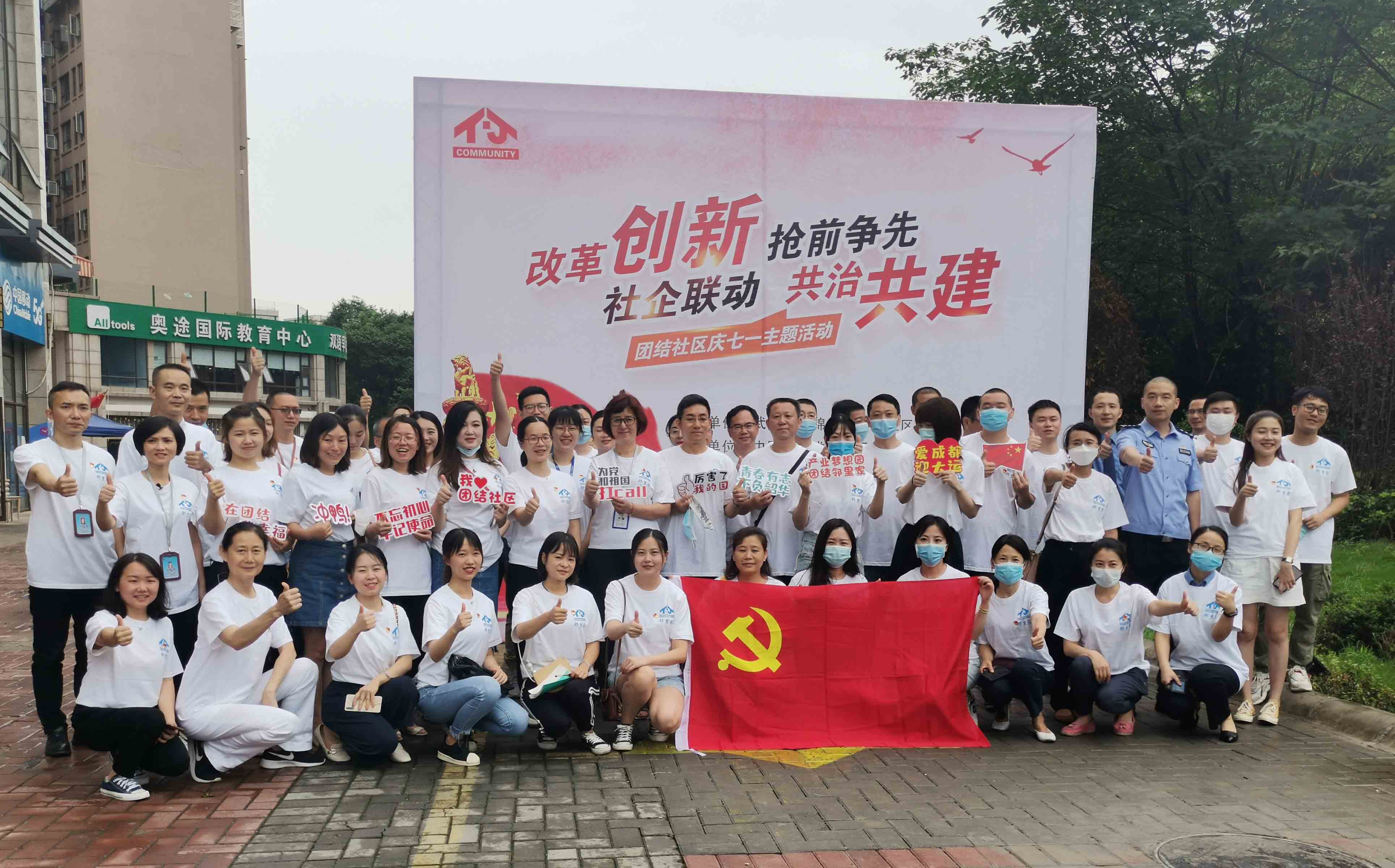 在中国共产党成立99周年之际,进一步加强辖区党组织和党员队伍建设,增强企事业单位及党员参与社区发展治理的意识,促进共建共治共享,推动“园区中的社区、社区中的园区”融合互动。7月1日上午,簇锦街道团结社区党委携手中国共产党电商云谷总部产业社区综合委员会联合开展“改革创新 抢前争先·社企联动 共治共建”庆七·一主题活动。团结社区相关负责人、辖区十七家企事业单位党组织参与此次活动。亿博集团党支部委员王熠瑄携三位党员代表受邀出席此次活动。